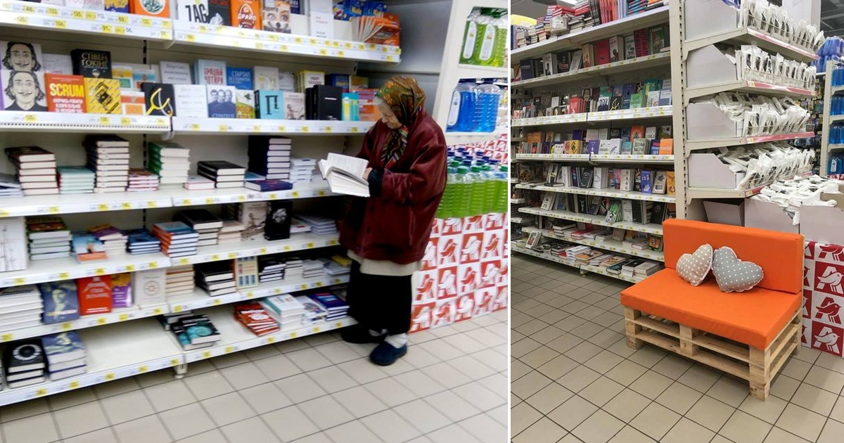 Для бывшей балерины, которая 15 лет читает книги в супермаркете, поставили диванчик