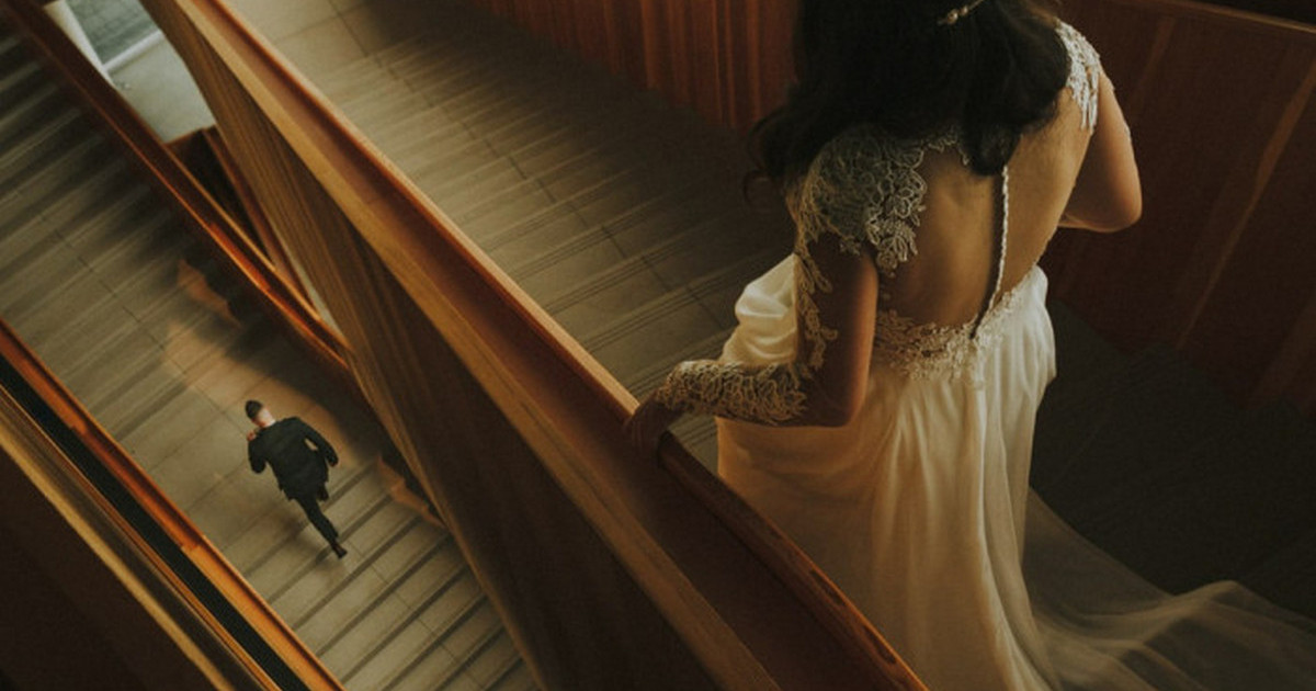 «Мне удалось отвлечь молодых от смеха и вовлечённости в волнующую атмосферу бракосочетания и провести их через участок света, – вспоминает О'Дэй. – Уже через пять минут после этого снимка они врывались на свое свадебное торжество, приветствовали гостей и поднимали бокалы шампанского».