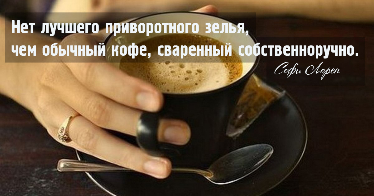 Софи Лорен утверждала: "Нет лучшего приворотного зелья, чем обычный кофе, сваренный собственноручно. Когда мужчина его попробует, он уже никуда не денется". А стихотворение, найденное на просторах интернета, даёт почву думать, что это действительно так.