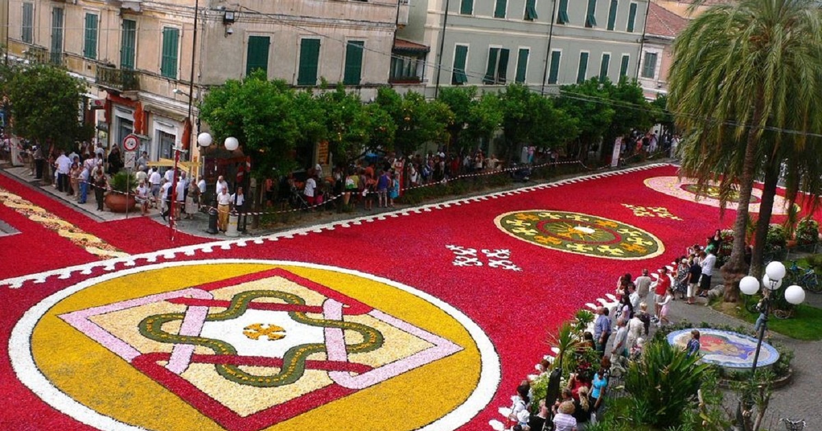 Многие туристические путеводители рекомендуют посещать Италию в мае или июне. А все потому, что в это время по всей стране проходят многочисленные цветочные парады. Городские улицы усыпаны цветочными лепестками, образующими целые полотна, начиная от геометрических орнаментов, и заканчивая репродукциями картин известных живописцев.