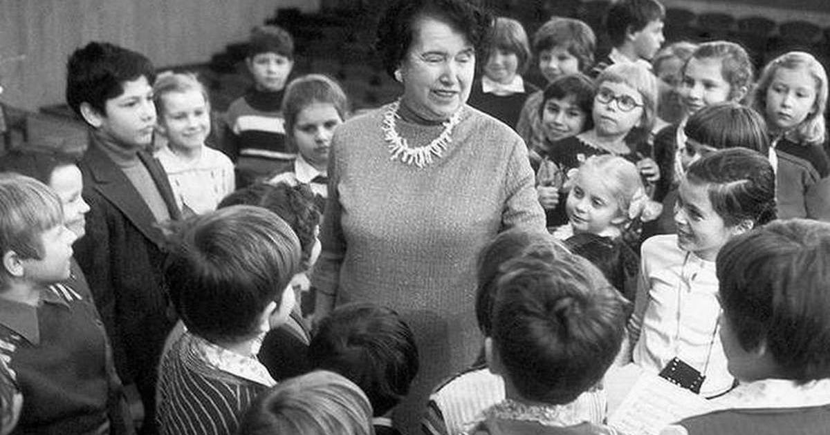 Наталия Сац в кругу юных зрителей./ Фото: bolshoyvopros.ru