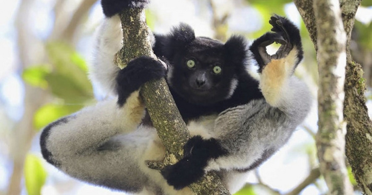 7. Короткохвостый индри показывает знак «ОК!», резервация на острове Мадагаскар