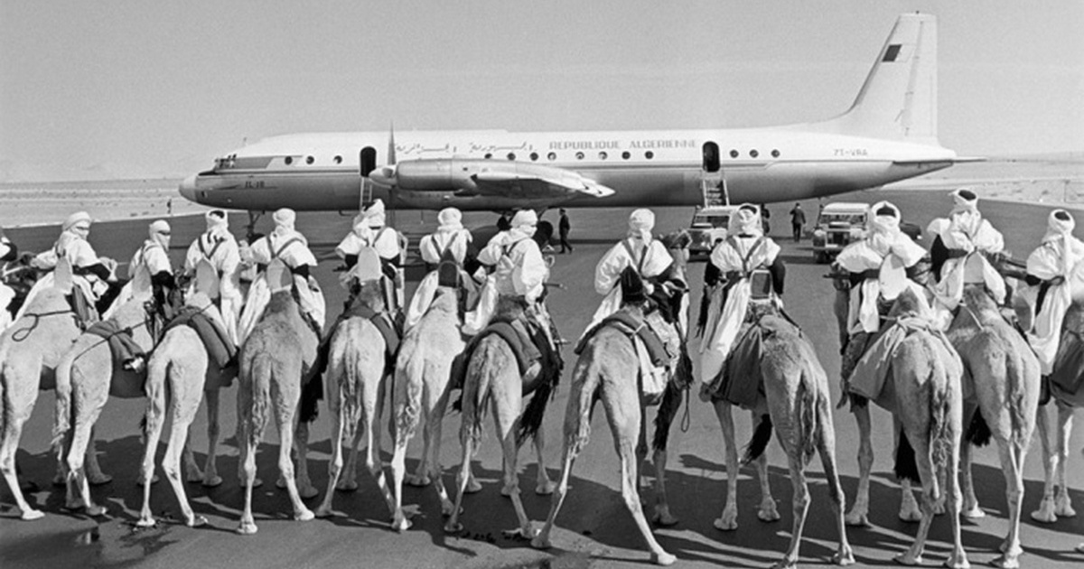 Встреча самолета в Сахаре в 1960-е годы.