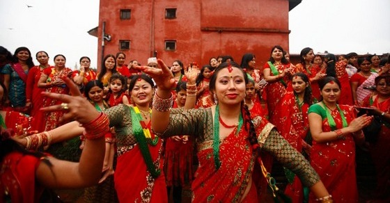 Ежегодно в августе-сентябре по всей Индии и в Непале проходят массовые празднования Тидж (Teej), в которых принимают участие только женщины. Праздник посвящен богу Шиве и его жене богине Парвати, чей брак считается идеальным и священным. В Непале в этом году фестиваль проходил с 15 по 17 сентября. В эти дни мужчины работают, а у их жен – выходной! Они надевают красные сари и украшения, наносят на кожу рисунки хной (мехинди), молятся за семейное счастье и здоровье мужей, поют и танцуют. Тидж – один из самых красочных и ярких праздников – далее в фотообзоре.