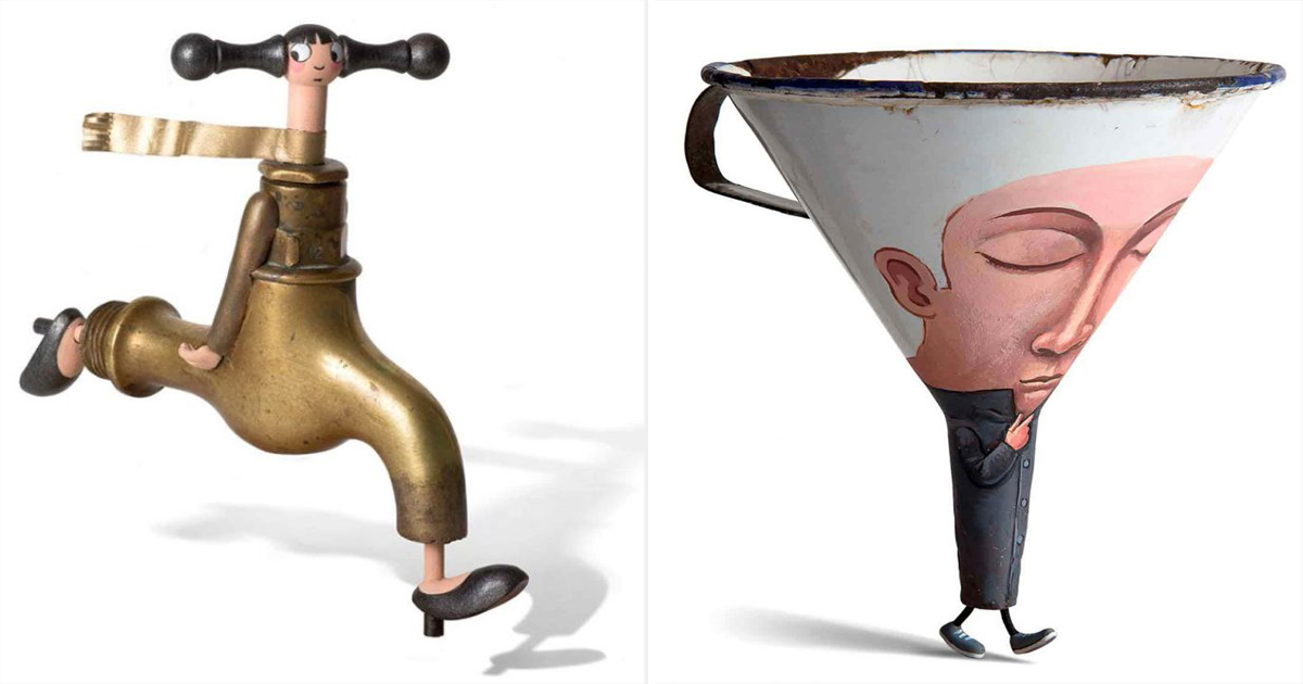 Глядя на мир глазами ребёнка, талантливый французский художник-иллюстратор, скульптор и графический дизайнер Гилберт Легранд (Gilbert Legrand) создал юмористическую серию работ, в которой оживил самые обычные предметы из повседневной жизни. В его руках гвозди, молотки, расчёски, щётки, ножницы, гаечные ключи и другие, казалось бы, скучные и обыденные вещи, предстают перед зрителем в новом свете и оригинальном оформление.