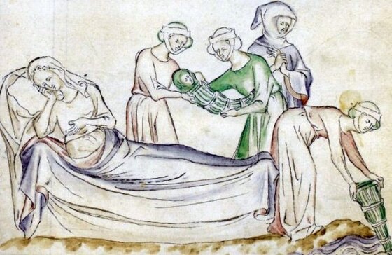 Если простые женщины находили тёмное местечко только на время родов, то знатным дамам европейского Средневековья пособия по здоровью и гигиене, с которыми они сверялись, рекомендовали проводить примерно месяц до и после родов в тёмной, непроветриваемой комнате в окружении женщин, готовых читать будущей или состоявшейся роженице Библию или петь псалмы.