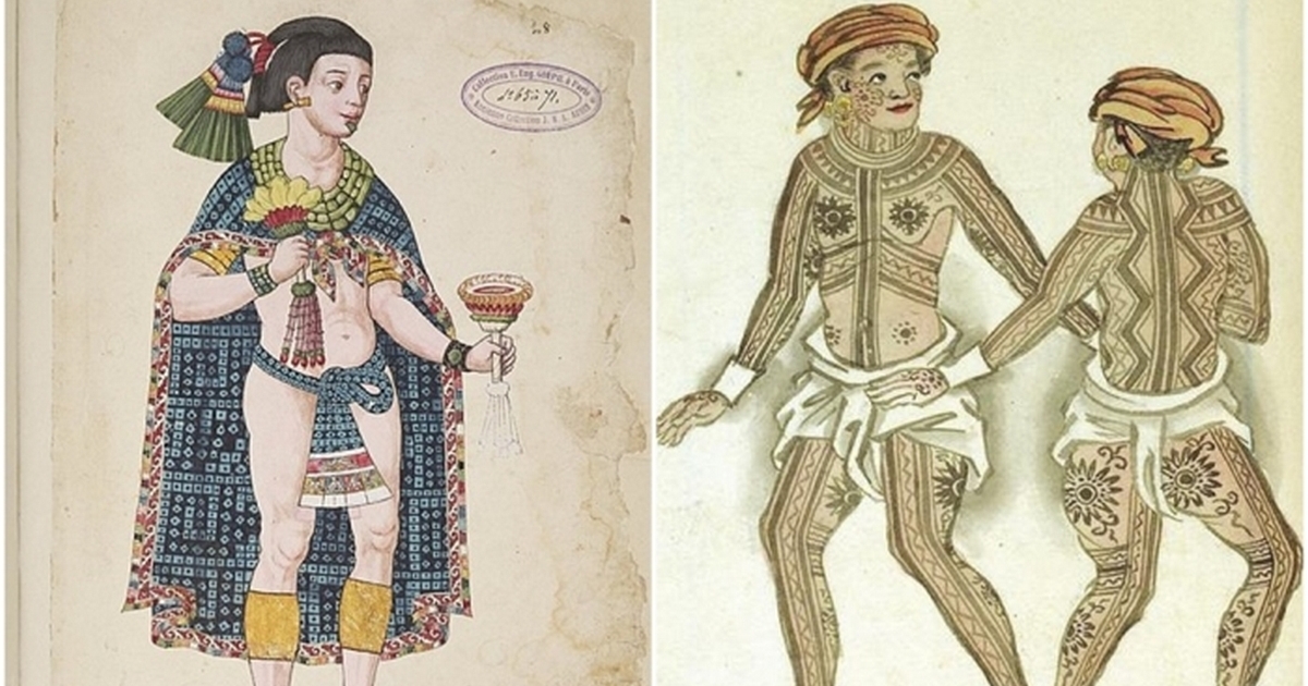 Форма набедренной повязки, которую носили с накидкой, около 1500 года. \ Висайцы (либо дворяне, либо воины) Филиппин намеренно носят только набедренные повязки (бахаг), чтобы продемонстрировать традиционные татуировки на всё тело, около 1590 года.