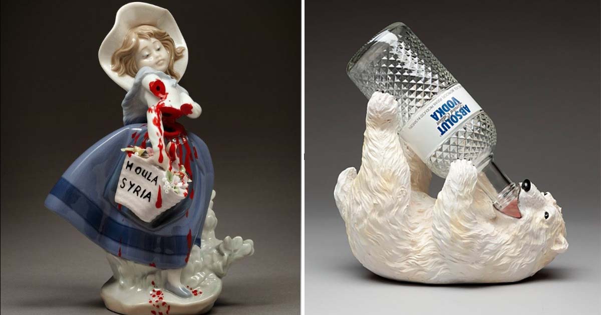 Художница превращает классические статуэтки в скандальные скульптуры о неприглядных реалиях современной жизни