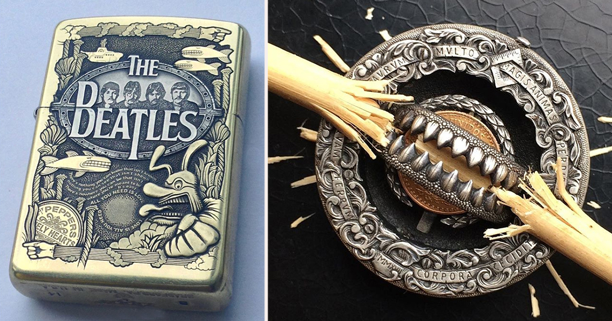 Каждая работа Романа Бутина из Екатеринбурга настолько маленькая, что ее можно спрятать в ладони. За основу Роман берет монеты и металлические зажигалки Zippo. И с помощью очень тонкой ювелирной резьбы он создает на их поверхности такие гравюры, что просто захватывает дух. А некоторые монеты еще и с секретом — некоторые из них кусаются, а другие открывают скрытые элементы.