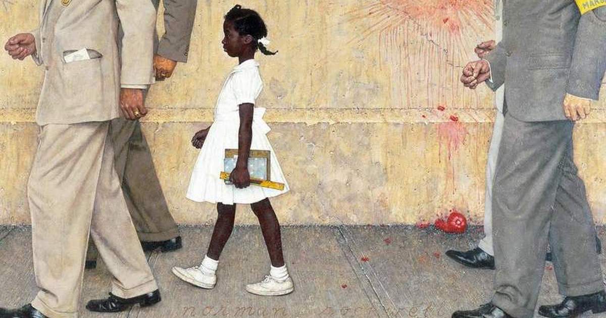 Художник-иллюстратор Норман Роквелл сделал свою карьеру, изображая обычную американскую жизнь в середине XX века - и хорошее, и плохое. На картине, написанной в 1964 году, изображена чернокожая девочка по имени Руби Бриджес по дороге в школу, в которой учатся только «белые». Девочку сопровождают сотрудники правоохранительных органов из-за расовой ненависти, которую вызвал тот факт, что ее допустили к обучению в подобной школе. Также она проходит мимо расовых оскорблений, написанных на стенах. Картина стала настоящим культовым символом Движения за гражданские права, и Барак Обама повесил ее на стену, когда он пригласил Бриджес встретиться с ним в Белом доме в 2011 году.