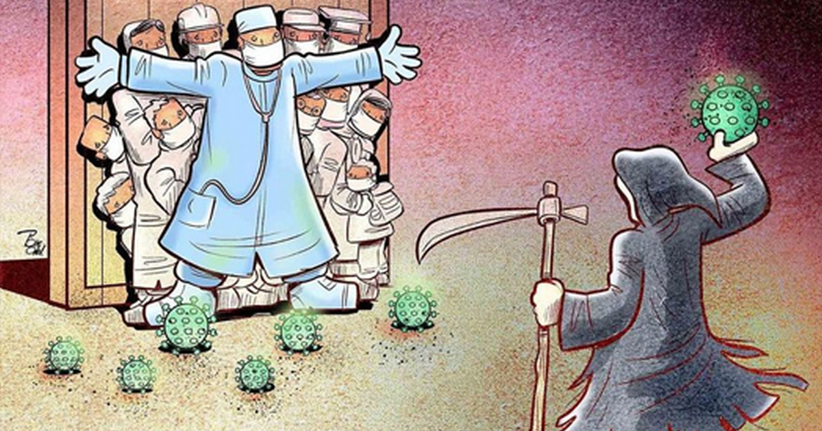 Злободневные иллюстрации о суровых буднях врачей во время пандемии: Взгляд иранского карикатуриста Алиреза Пакделя