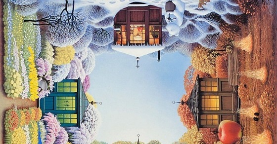 Творчество польского художника Яцека Йерки (Jacek Yerka) можно назвать головокружительным в прямом смысле этого слова. Чтобы рассмотреть картины получше, Вам придется или вращать монитор, или хорошенько размять шею. Серия «4siders» - это причудливые работы, на каждой из которых по кругу запечатлено сразу четыре разнообразных пейзажа.