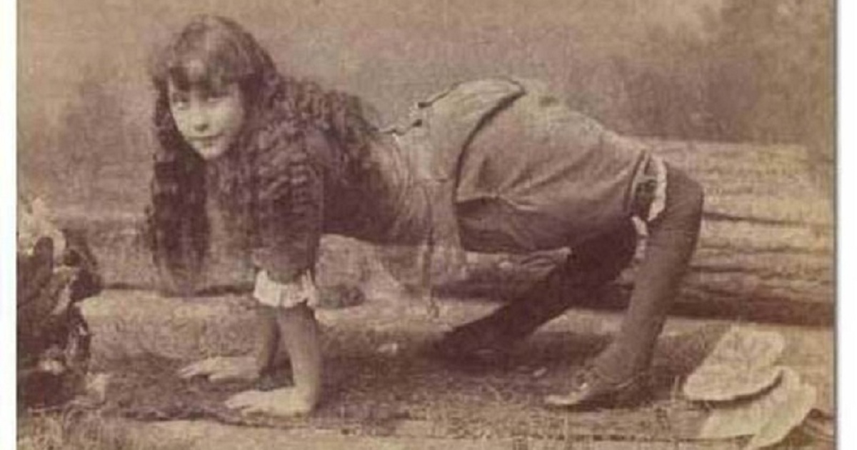 Этой девочке не повезло родиться с коленями, выгнутыми в обратную сторону. Элла Харпер (Ella Harper) родилась в 1870 году. Она, как и многие другие люди с телесными дефектами, показывалась в цирке. Элла могла передвигаться только на четвереньках, за что и получила прозвище «девочка-верблюд». Судя по цирковым записям, Элла Харпер покинула цирк в 16 лет, чтобы пойти в школу. После этого о ней ничего неизвестно.