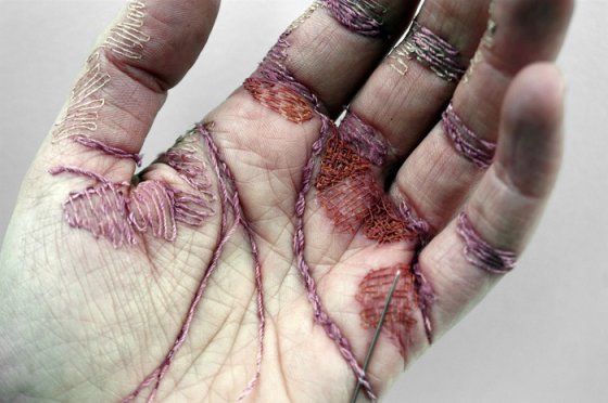 Стежок, еще стежок: вышивка на ладони, имитирующая мозоли от «женского» труда