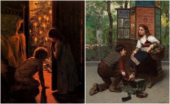 Слева - картина Мослера «Возвращение», справа - «Уголок у камина»