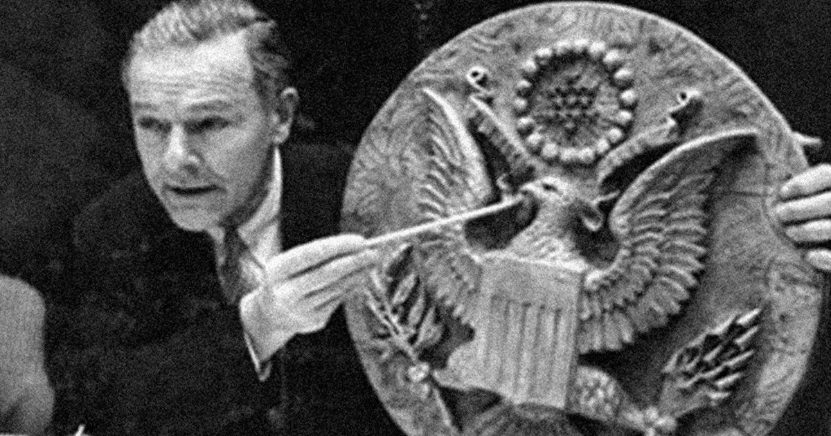 Через год после окончания Второй мировой войны несколько советских школьников из пионерской организации вручили послу США в Советском Союзе Уильяму Гарриману необычный подарок. Это была резная деревянная копия Большой печати Соединённых Штатов. Сделано это было в знак дружбы, солидарности и признательности за союзническую помощь в войне. Совершенно безобидный, на первый взгляд, подарок, водрузили на стену кабинета посольской резиденции в Москве. Там он провисел целых семь лет, пока случайно не выяснилось, что невинный на вид сувенир был чем-то большим, чем простое украшение.