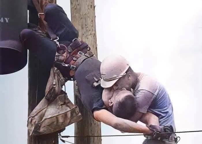 На самом же деле на этой фотографии запечатлена трагедия, случившаяся с одним из них. В тот день Рэндалл и Джей проводили плановое техническое обслуживание на линии электропередач, под напряжением 4000 вольт, когда Рэндалл случайно коснулся одного из проводов. В тот же момент его сердце остановилось и тело безжизненно повисло на обвязке. Джей не растерялся и прямо на столбе начал делать ему искусственное дыхание.