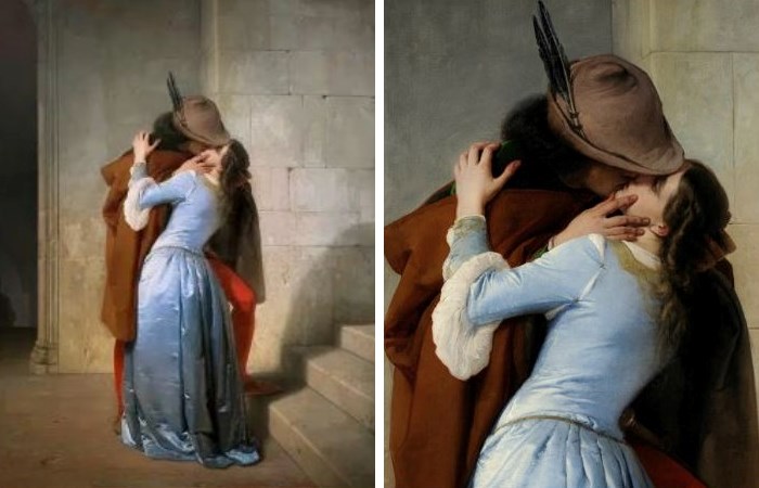 Одной из первых картин, запечатлевших поцелуй возлюбленных, стала работа итальянского художника Франческо Айеса «Поцелуй». Она была написана в те времена, когда условности и приличия, доминирующие в обществе, считали неподобающим изображать любовные сцены, и в течение четверти века провисела в резиденции графа Висконти, известного миланского патриота, который и заказал художнику эту картину, и только после его смерти попала в музей.
