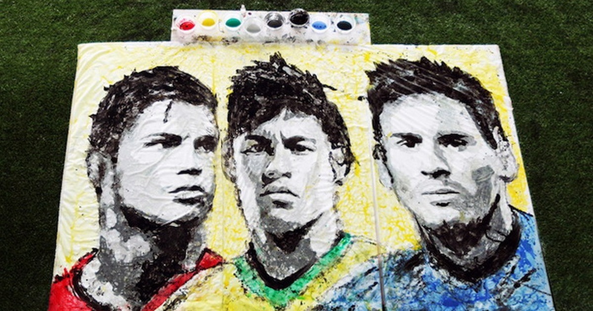 Роналду, Неймар и Месси: портреты лучших игроков Чемпионата мира, нарисованные футбольным мячом