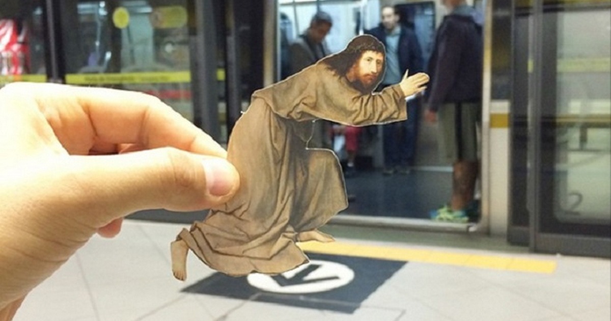 Уроженец Бразилии Лоренцо Кастеллини (Lorenzo Castellini) собрал в своём Instagram мировые шедевры известнейший мастеров, правда, представил он их весьма необычным образом. Всё, что ему потребовалось для творчества – ножницы и смартфон. Кастеллини броди по улицам Сан-Паулу и фотографирует вырезанных из журналов известных персонажей на фоне бытовых сцен.