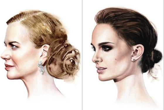 Все портреты нарисованы в профиль. Художник намеренно «собрал» в пучок волосы актрис, чтобы акцентировать внимание на практически идеальных линиях скул. А точные мазки позволили изобразить четко черты лица, делающие узнаваемыми ту или иную знаменитость.