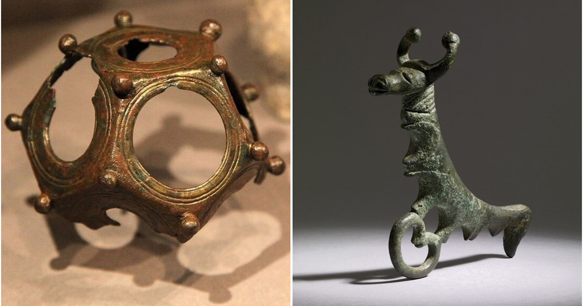 Эти любопытные предметы были найдены относительно недавно. Они вызвали очень горячие дискуссии относительно своего предназначения. Датируются эти загадочные артефакты римским периодом в Британии (43-410 гг. н.э.). Учёные обнаружили чуть более 130 экземпляров этих странных вещиц. Сделаны они из меди. Следов использования практически не имеют. Изображений этих предметов не находили в древних документах. По их размеру и форме невозможно постичь тайну их предназначения.