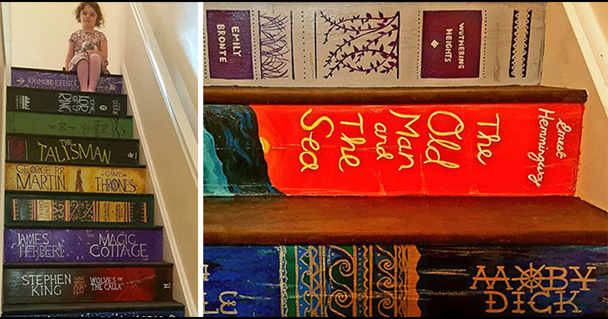 Когда въезжаешь в собственный дом или квартиру, хочется сделать там все по-своему, чтобы каждый уголок соответствовал тому, как было уже придумано заранее, как мечталось, как давно хотелось. Вот и Пиппа Брахэм из Великобритании подошла творчески к оформлению новоприобретенного дома. После недолгих размышлений, она решила оформить ступеньки на второй этаж в видела корешков любимых ее с мужем книг.