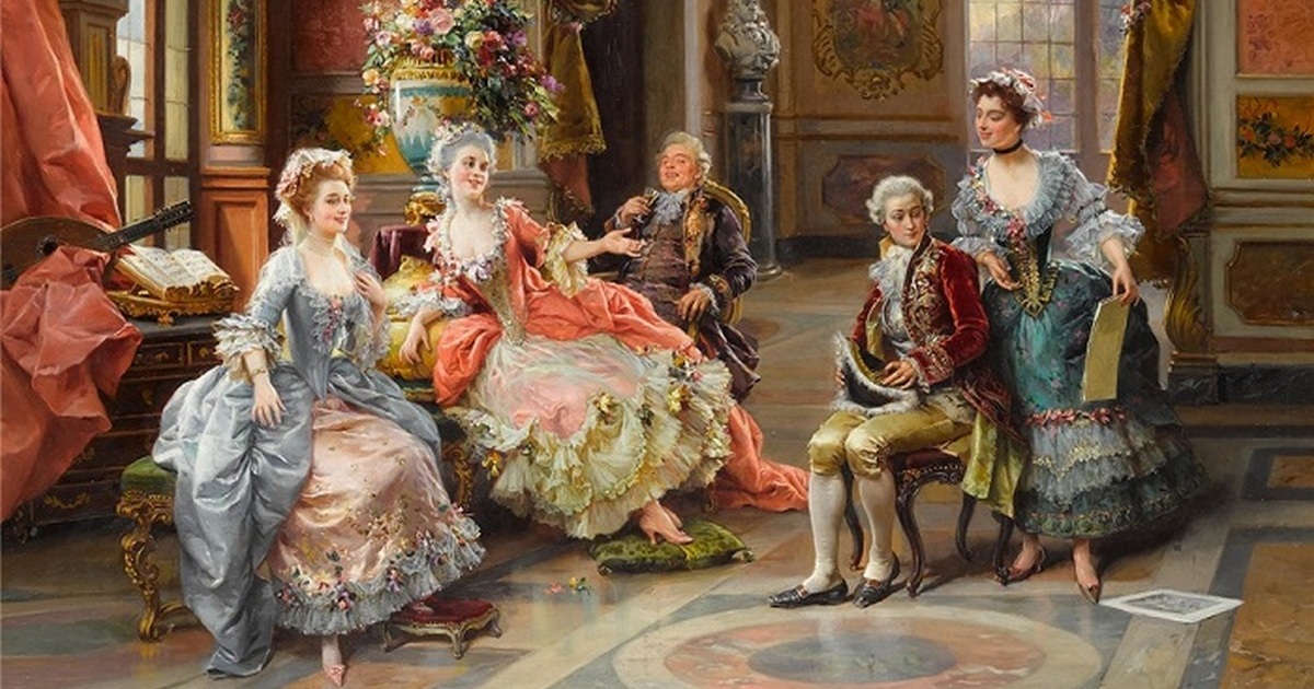 Дамы Галантного века охотно показывали декольте, и капельки пота, как считалось, его не портили. Картина Чезаре Детти.
