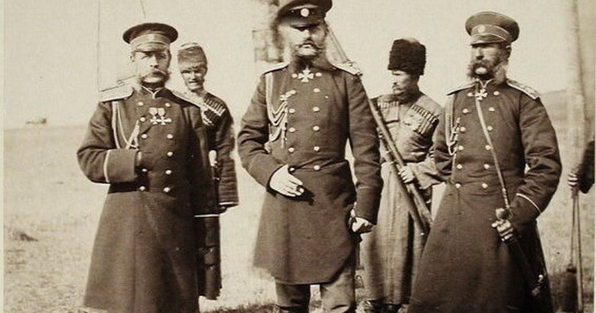 Слева направо: генерал-адъютант князь Д. И. Святополк-Мирский, великий князь Михаил Николаевич, генерал-адъютант граф М. Т. Лорис-Меликов (1877)./Фото: img-fotki.yandex.ru