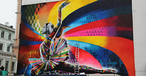 Имя Майи Плисецкой – целая эпоха в мировом балете. Переоценить мастерство и талант этой замечательной танцовщицы просто невозможно. Ею можно лишь восторгаться: снимать фильмы о ее жизни, писать книги или – рисовать ее портреты на стенах домов. Именно так и поступил известный бразильский уличный художник Эдуардо Кобра (Eduardo Kobra). Теперь на одной из московских улиц красуется огромное граффити с изображением Майи Плисецкой.