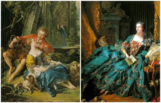 Стиль рококо возник во Франции в начале восемнадцатого века. Его также часто называют периодом позднего барокко. Поначалу рококо имело уничижительный оттенок. Роскошный и чрезмерно орнаментальный стиль часто считался безвкусным. Оба стиля использовали сложные формы, но рококо характеризовался более лёгким, нежным, игривым, интимным и асимметричным внешним видом с замысловатыми изгибами и украшениями. Несмотря на то, что этот стиль зародился во Франции, вскоре он стал очень популярным во многих европейских странах, таких как Германия, Австрия, Россия, Испания и северная Италия. Этот стиль часто ассоциируется с Людовиком XV и Буше, который был одним из самых важных представителей этого движения.