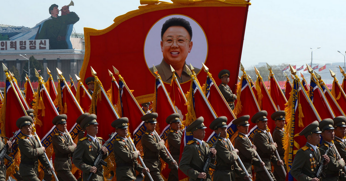 Ким Чен Ир приветствует народ на военном параде. 2002 год.