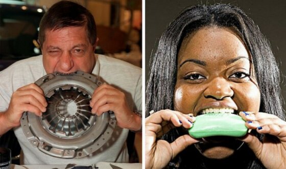 Мишель Лотито известен всему миру своим необычным пристрастием к железу, стеклу и даже резине. Однако он не один в этом мире – есть и другие. Один из них 80-летний Бранко Црногорац из Сербии. Его стаж поедания несъедобных предметов около 20 лет. Все началось, когда Бранко пытался справиться с сильной изжогой, но ничего не помогало. Тогда друг в шутку посоветовал ему съесть песок. Бранко готов был на все, только бы справиться с «огнем в желудке». Песок помог избавиться от проблемы, и не навредил здоровью серба. Тогда ему пришла идея еще что-то попробовать. За 20 лет Бранко «слопал» 12 тыс. вилок и 25 тыс. лампочек, 3 тыс. тарелок и ложек, и другое. Правда, ему пришлось отказаться от этой странной диеты после того, как однажды он «поперхнулся» педалью от велосипеда. Врачам пришлось почистить ему кишки, и извлечь около 3 кг предметов. Пенсионер признал, что его ЖКТ уже не справляется с жесткой пищей. В 2021 году Бранко Црногорац умер на 90-м году жизни.