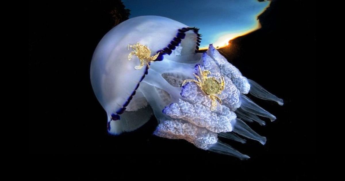 Крабы катаются на медузе. Автор: Csaba Tokolyi.