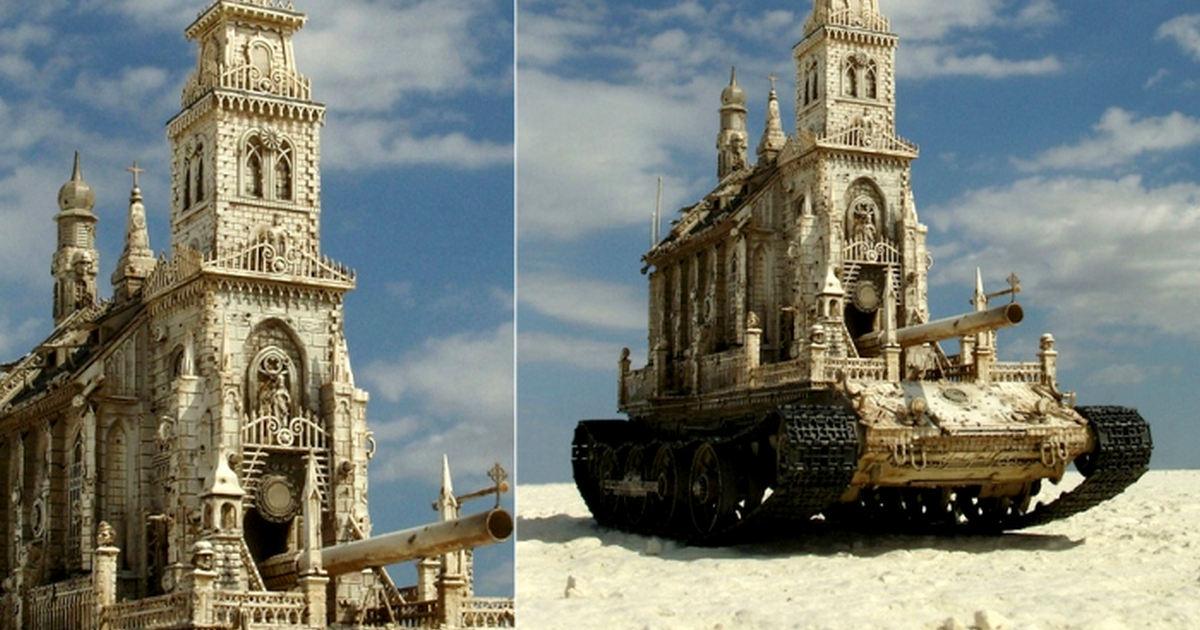 Церкви, взгромоздившиеся на танки, - такая идея могла прийти в голову только такому выдумщику и нонконформисту как Крис Кукси. Причем идея эта взялась не на пустом месте, ведь не фантазией единой. Как известно, церковь испокон веков принимала участие в вооруженных конфликтах, и не одна война разгорелась на почве религиозных и межконфессионных противоречий. Да и сегодня этим мощным оружием пользуются власть имущие, чтобы добиться поставленной цели, а на войне все средства хороши. Стало быть, церквям на танках - самое место.