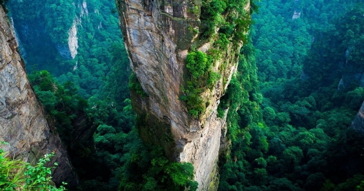 Огромные каменные скалы высотой до 800 метров как бы связывают землю и небо.