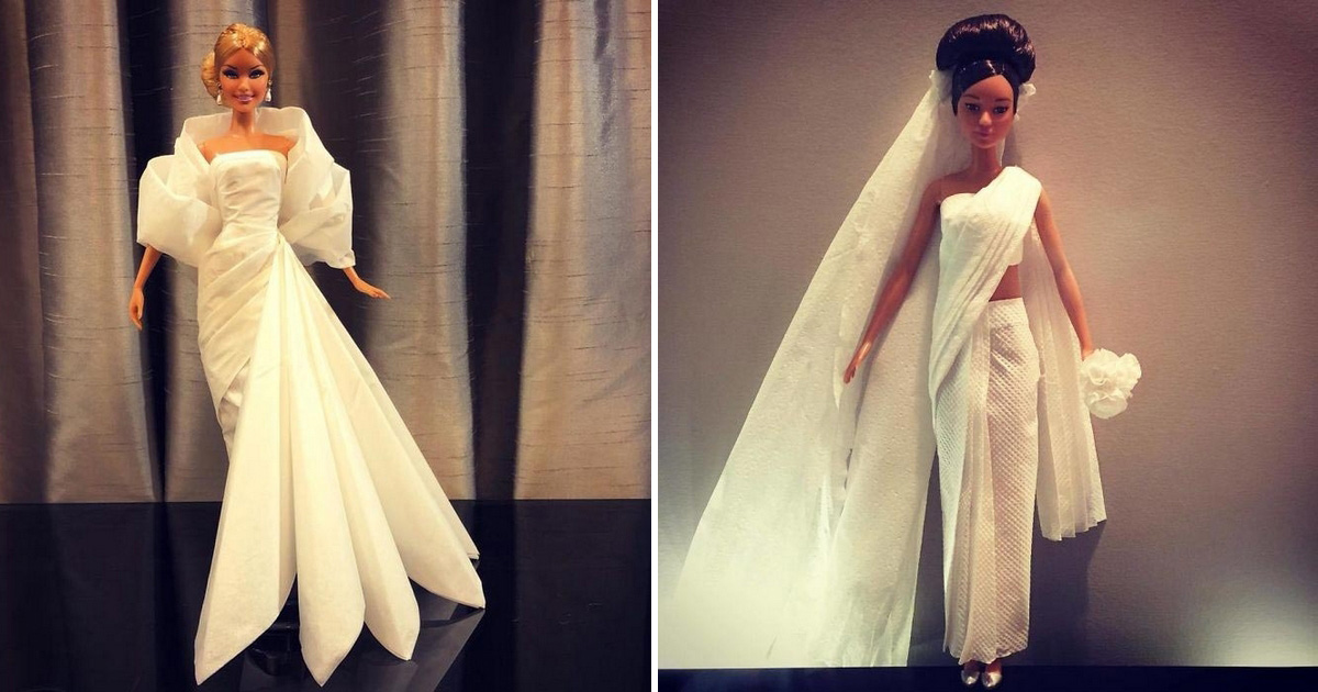 Свадебные платья для Барби, созданные из туалетной бумаги. Автор: Jian Yang.