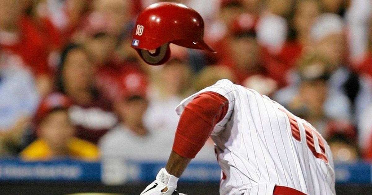 Бейсбольный мяч попал прямо в лицо игроку команды Philadelphia Phillies.