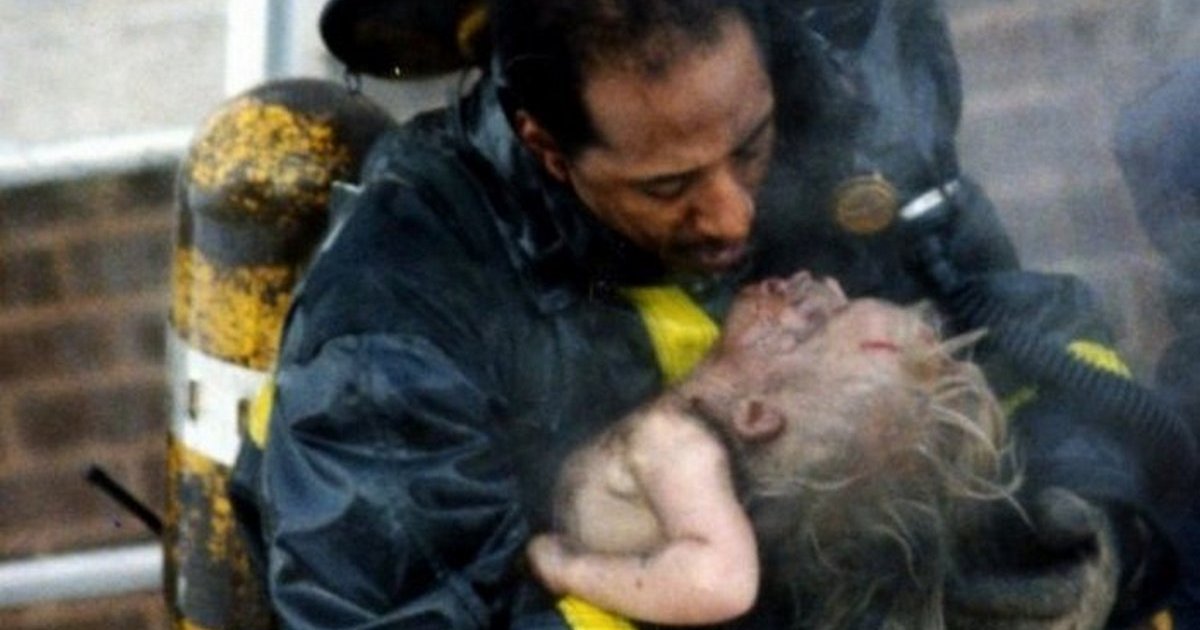 Пожарный и маленькая девочка. Фотография Рона Олшвангера, после которой люди начали устанавливать детекторы дыма в своих домах.