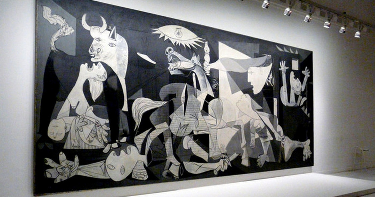 Примерно полмиллиона человек погибли в гражданской войне в Испании с 1936 по 1939 год. На картине Пабло Пикассо изображена бомбардировка испанского города в 1937 году, когда Гитлер и Муссолини пришли на помощь товарищу-диктатору Франсиско Франко. Это позволило Франко выиграть войну, а Гитлеру и Муссолини - испытать свое оружие перед Второй мировой войной. Этот хороший пример кубизма показывает людей и животных в искаженной и причудливой сцене агонии и террора. Картина является одним из самых известных полотен Пикассо и часто встречается в учебниках по искусству и истории. Она служит напоминанием о том, что борьба с фашизмом и нацизмом фактически началась задолго до официального начала Второй мировой войны в 1939 году.