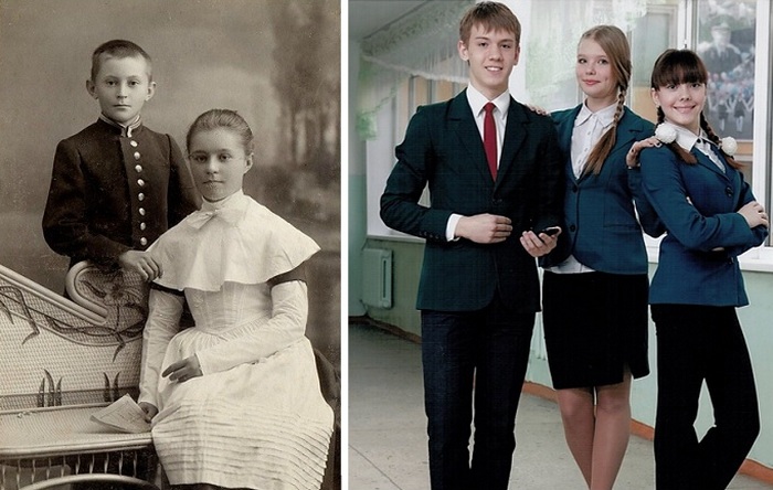 Октябрьская революция совершила переворот не только на Государственном уровне. Глобальные перемены свершились и в системе образования. Вчерашние «кухаркины» дети сели за парты учиться. Естественно, у всех учеников не было материальных возможностей на приобретение специальных нарядов.