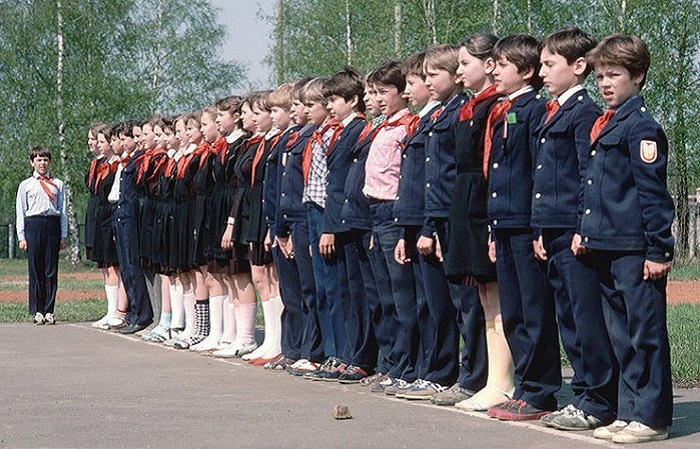 В советской школе проводили линейки, на которых объявляли выговор за отсутствие форменной одежды или пионерского галстука, значка. / Фото: cdn.fishki.net