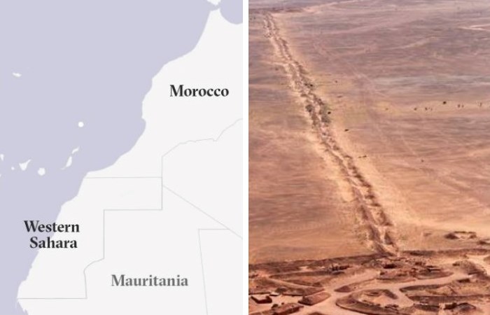 Эта разделенная страна со сложной, истерзанной войной историей является одной из самых малонаселенных территорий в мире. Во время обострения военного конфликта десятки тысяч коренных жителей Западной Сахары вынуждены были бежать в соседний, поддерживающий их Алжир, где были созданы лагеря для беженцев, но некоторые остались по обе стороны гигантской стены, которую они называют «стеной позора».
