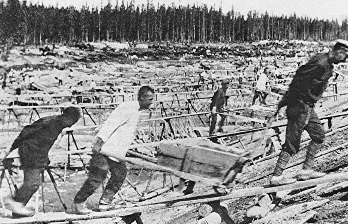 Заключенные ГУЛАГа на строительстве ж/д. / Фото: kulturologia.ru
