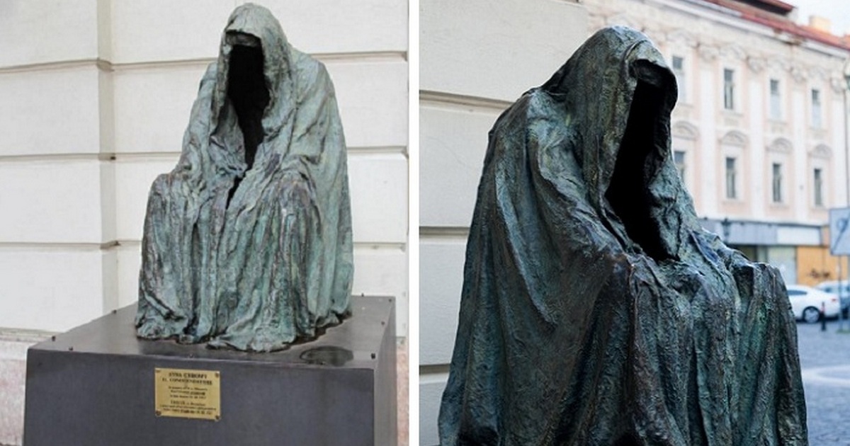 А вот в Праге «Плащ Совести» имеет свое название и историю. Высотой в полтора метра бронзовая скульптура «Командор» издалека напоминает путника в плаще, присевшего отдохнуть. А подойдя к фигуре, видно, что фигуры-то нет, а есть один полый плащ, принявший форму человеческого тела.