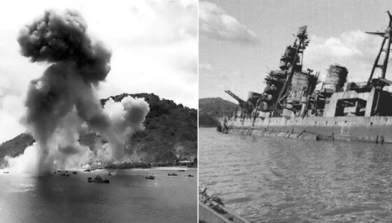 Японский флот и авиацию атаковали и с воздуха, и с моря.