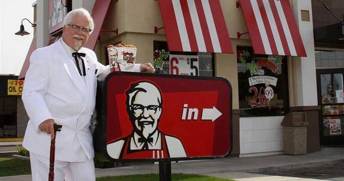 Однако, когда полковнику исполнилось 62, и, казалось, что жизнь его уже удалась, дело неожиданно пошло под откос. Ресторан стал терпеть убытки из-за открытия новой автомагистрали, сократившей число посетителей. В результате он опять остался у разбитого корыта, но именно в этот момент Сандерс осознал, что у него осталась одна ценность, наработанная за эти годы – уникальный секрет хрустящей жареной курочки. Все эти годы он, как предчувствовал, держал его в секрете. И теперь пожилой полковник в белом костюме начал ездить по стране, пытаясь продать рецепт. Более тысячи раз он получал отказ! Но терпение и вера в себя в очередной раз победили. Один из известных рестораторов в Солт-Лейк-Сити Пит Герман увидел потенциал в седом стильном полковнике с его невероятно вкусной курицей и решил вложить в это предприятие деньги. Вскоре, в 1952 году был открыт первый ресторан «Kentucky Fried Chicken», за несколько десятков лет превратившийся в гигантскую сеть KFC. Улыбающееся лицо полковника в очках и с галстуком-ленточкой стало логотипом компании и за 60 с лишним лет ее существования это изображение не менялось.