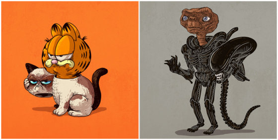 Проект получил название “Icons Unmasked” и представляет собой микс - когда довольно очевидный, а когда и совершенно неожиданный - из разных героев, а также просто животных, если они как-то связаны с "жертвами творчества Солиса". Ну ладно, про Даффи Дака мы все подозревали неладное, но Чужой...