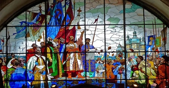 Витраж «Переяславская рада» расположен над главным входом в павильон Украины на ВДНХ и считается одним из самых красивых.