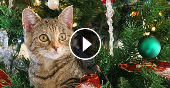 Забавная видео-подборка о непростых взаимоотношениях котов и новогодних елок
